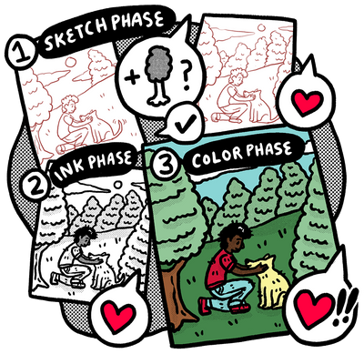 - THERE ARE 2-3 PHASES FOR EVERY PROJECT: SKETCH, INK, & COLOR*