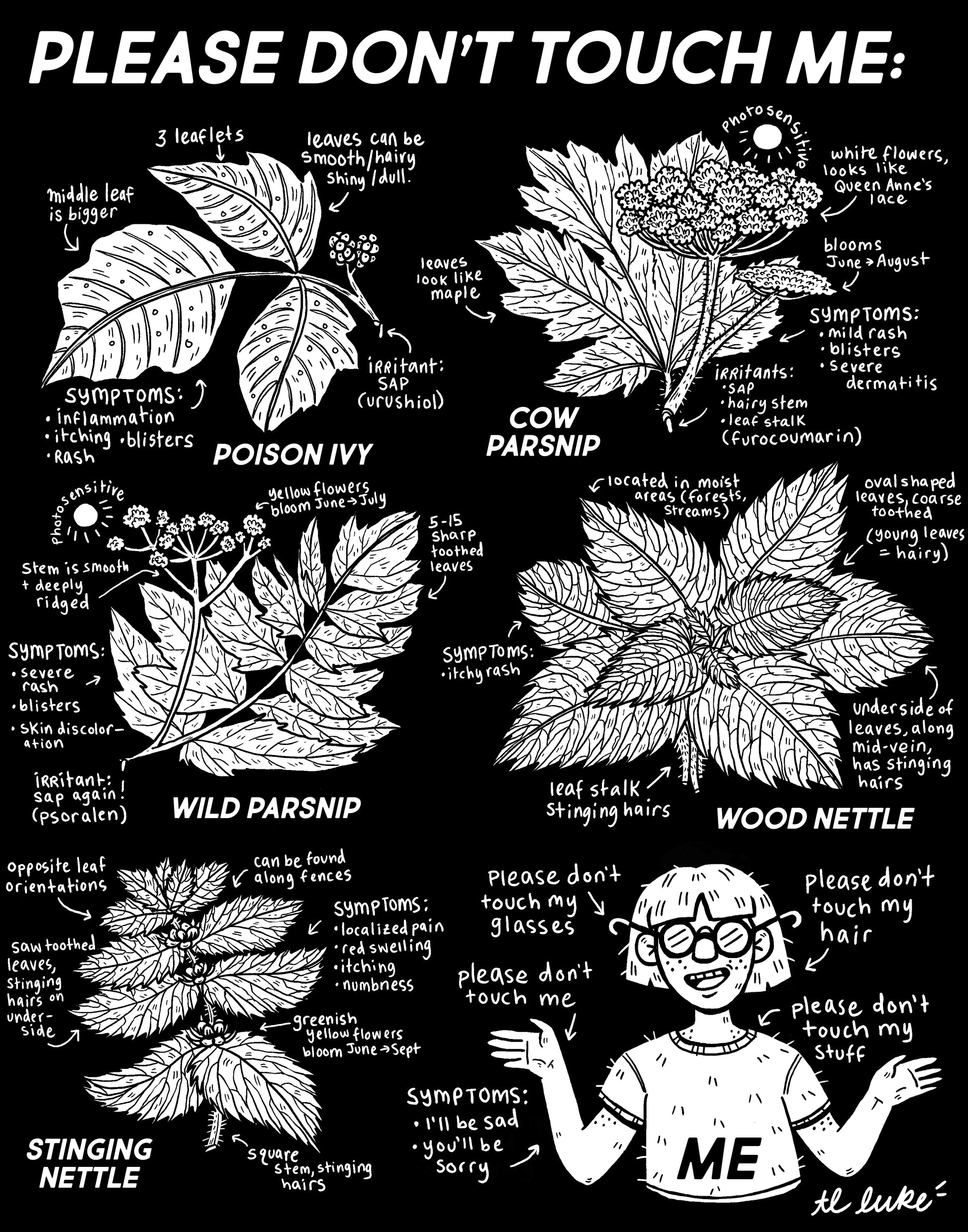 Wisconsin-native poisonous plants (Poison Ivy, Cow Parsnip, Wild Parsnip, Wood Nettle, and Stinging Nettle) and how to identify them + one bonus kid-friendly boundaries lesson! Check out the shirt and tank too!